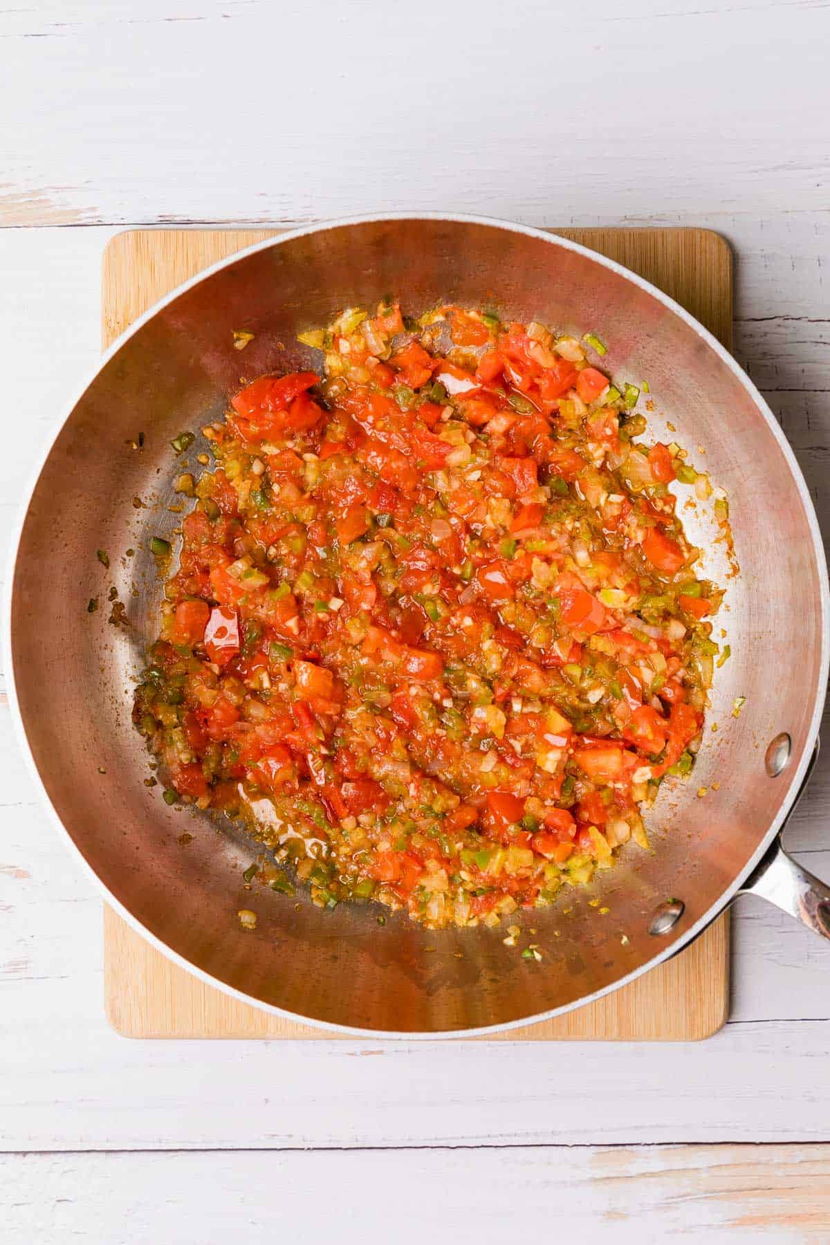 - I don't recommend using a cast iron skillet for this recipe because the acidic nature of the tomatoes can penetrate the porous surface.